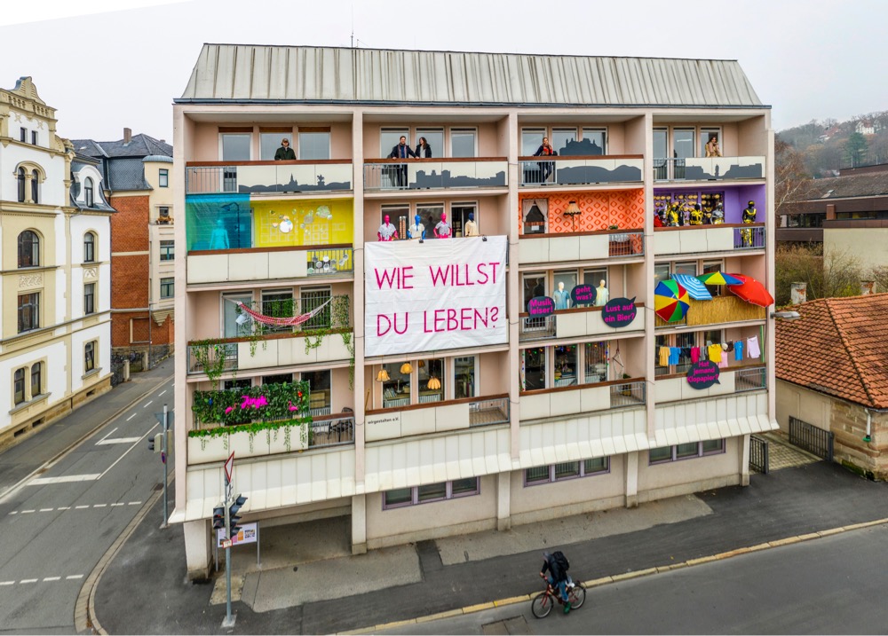 Balkoninstallation „Wie willst Du leben?“