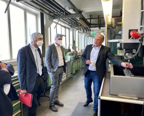 Oberbürgermeister Dominik Sauerteig und 3. Bürgermeister Thomas Nowak haben die Firma HK Cosmetic Packaging besucht. Ein Unternehmen, das wirtschaftlichen Erfolg mit Klimaschutz verbindet.