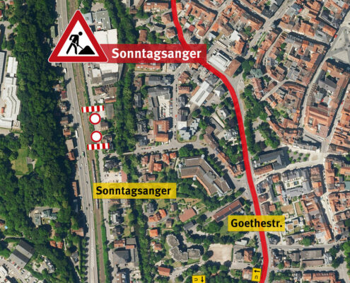 Wegen Stellung eines Mobilkrans für Präzisionshubarbeiten und Abbau des Hochbaukrans wird der Sonntagsanger (zwischen Hausnummer 12-14) ab Montag (12. Juli bis vsl. 30. Juli 2021) gesperrt.