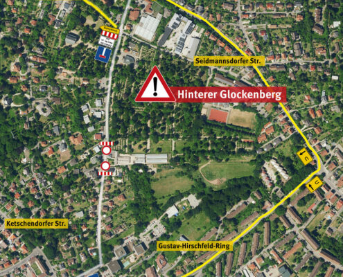 Wegen Behebung eines Kabelschadens für die Telekom kommt es ab Mittwoch (14. Juli bis vsl. 23. Juli) zur Vollsperrung der Straße Hinterer Glockenberg (bei Hausnummer 20)..