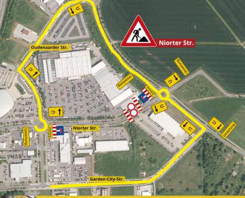 Wegen Herstellung von Hausanschlüssen kommt es ab Montag (19. Juli bis vsl. 30. Juli) zur Vollsperrung der Niorter Str. (bei Hausnummer 3a).