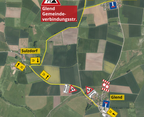 Wegen Neubau eines Brückenbauwerks (ST2205) kommt es ab Montag (19. Juli bis vsl. 18. Juli 2021) zur Vollsperrung der Gemeindeverbindungsstr. Glend / Beuerfeld.