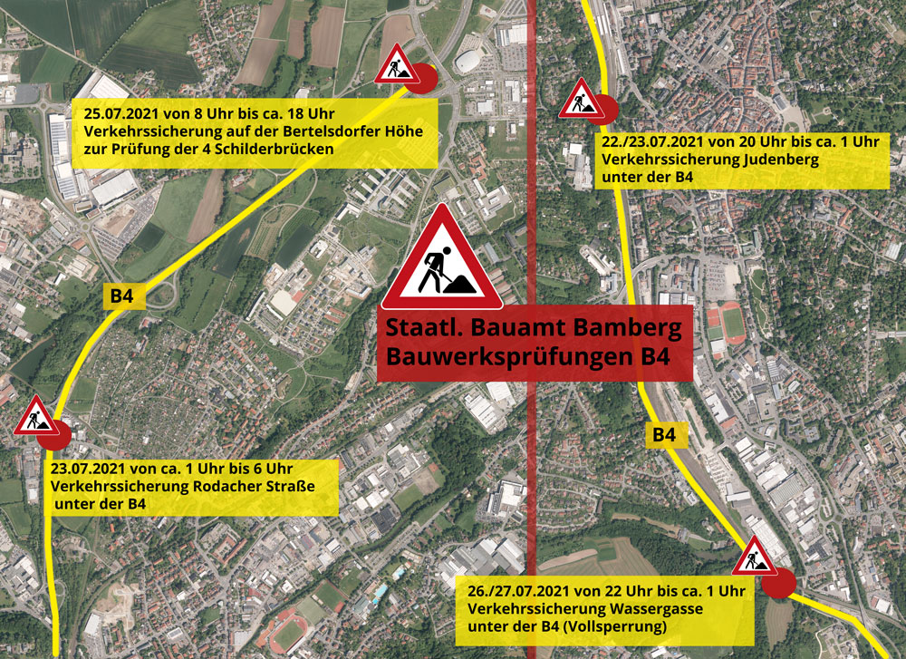 Bauwerksprüfungen durch das Staatl. Bauamt Bamberg an der B4
