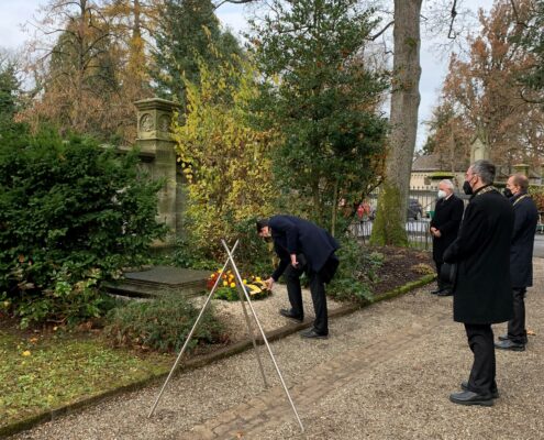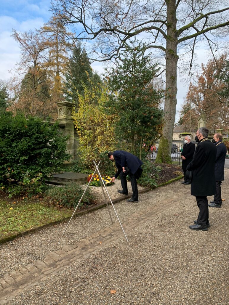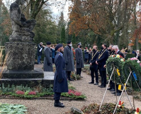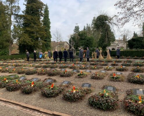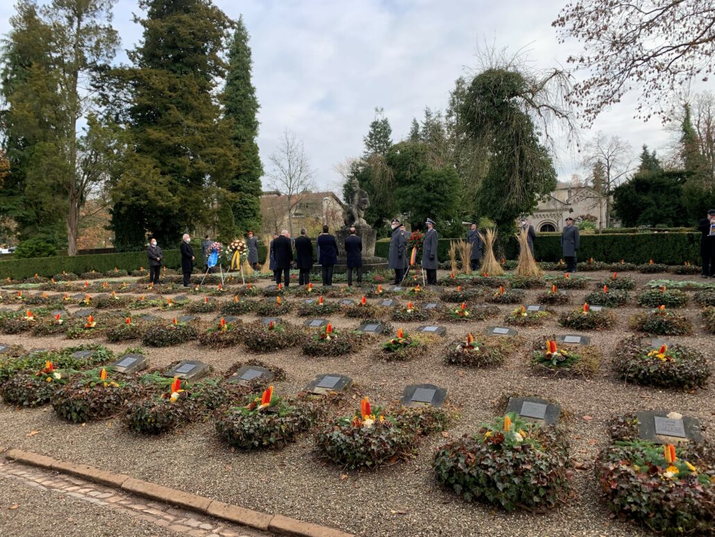 Am Volkstrauertag haben Dominik Sauerteig, Oberbürgermeister, Hans-Herbert Hartan, 2. Bürgermeister, Thomas Nowak, 3. Bürgermeister, und Norbert Tessmer. Kreisvorsitzender des Volksbundes Deutscher Kriegsgräberfürsorge, den Opfern von Gewalt und Krieg gedacht.