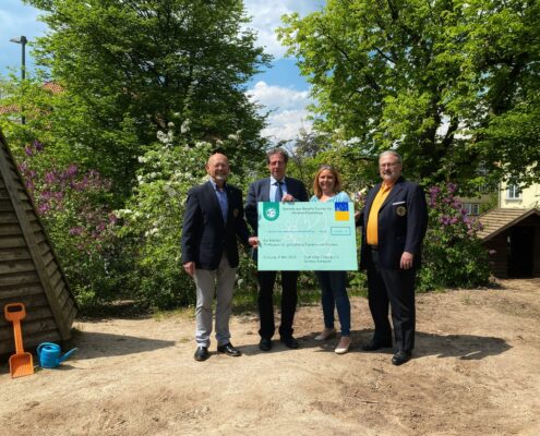 Dr. Andreas Höllein (Präsident Golfclub Schloss Tambach), Reinhold Ehl (Leiter Jugendamt), Katja Fuß (Mayak), Stephan Klein (Vorstand Golfclub Schloss Tambach)Ukrainehilfe: Golfclub Coburg Schloss Tambach unterstützt Familientreff