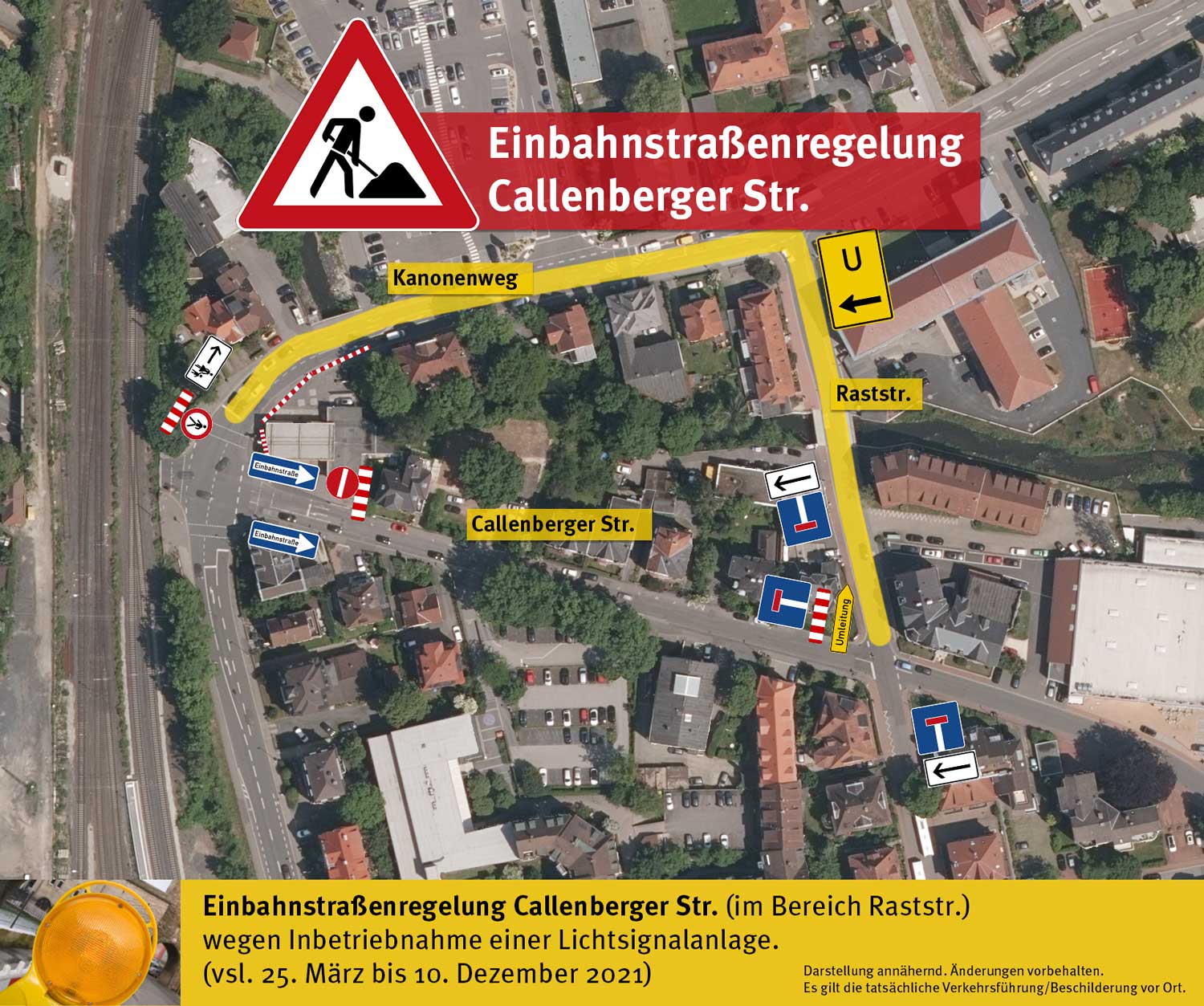 Einbahnstraßenregelung Callenberger Str. / Raststr. ab Donnerstag 25. März 2021