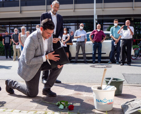 „Ich sage in alle Deutlichkeit: Nie wieder dürfen Hass und Krieg zu einem Mittel der Politik in Europa, Deutschland und bei uns vor Ort werden. Nie wieder. Und dieses Nie Wieder ist heute wichtiger denn je. Denn wir müssen mit größter Sorge beobachten, wie rechte Kräfte unter Nutzung alle Möglichkeiten unserer Demokratie die dunkle Seite unserer Geschichte relativieren und in ihrem Sinne umzudeuten versuchen. Wehret den Anfängen“, sagte Oberbürgermeister Dominik Sauerteig während der feierlichen Verlegung der Stolpersteine. Gemeinsam mit 3. Bürgermeister Thomas Nowak dankte er den Patinnen und Paten. Gaby Schuller hat akribisch die Lebensläufe der sechs Coburgerinnen und Coburger recherchiert und die Lebensläufe aufgeschrieben. Hier gibt es die Lebenswege zum Nachlesen.