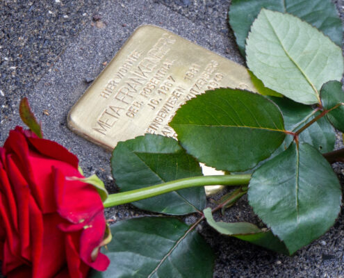 Stolpersteine erinnern an die Opfer der Schreckensherrschaft der Nationalsozialisten. Messingplatten, die sich deutlich vom Untergrund abheben und die uns heute erinnern sollen, dass mitten in Coburg Menschen gelebt haben, die ihre Stadt verlassen durch Verhaftung, Vertreibung oder Flucht verlassen mussten.
