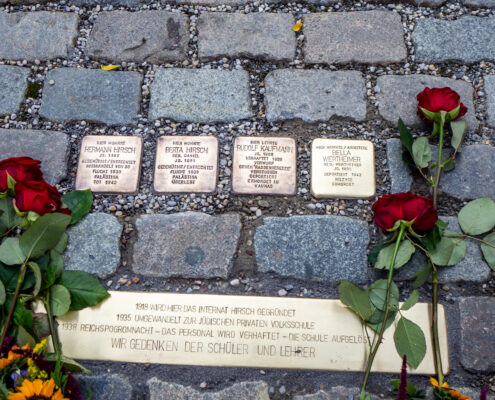 An die private Volksschule des Predigers Hirsch erinnert nun eine Stolperschwelle. Sie wurde im Gedenken an die Schüler und Lehrer verlegt, die dort Zuflucht gefunden hatten. Die Patenschaft für die Stolperschwelle haben übernommen: Stefan Fey, Katrin und Stefan Schwuchow, Nele Gramß, Markus Linke, Günther Troll, Ursula Herpich, Susanne Zech und das Coburger Tageblatt.