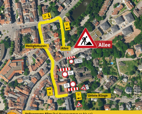 Die Verlegung einer Fernwärmeleitung ins Haus Allee 7 erfordert ab Montag (19. April bis vsl. 30. April) die Vollsperrung der Allee.