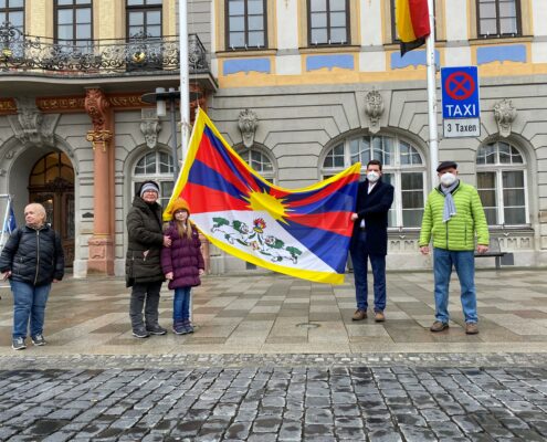 Tibet-Flagge erstmals vor dem Rathaus gehisst