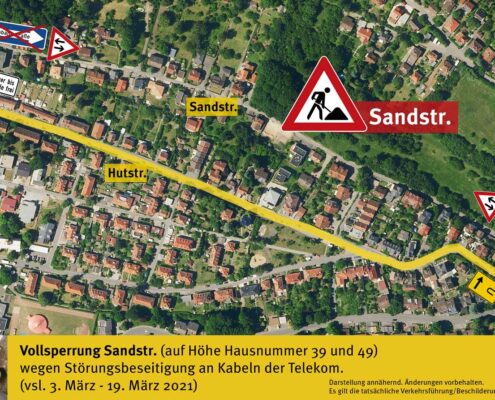 Wegen Baumfällarbeiten wird die Schulstraße (bei Hausnummer 5) am Samstag (20. Februar voraussichtlich von 7 bis 17 Uhr) gesperrt.