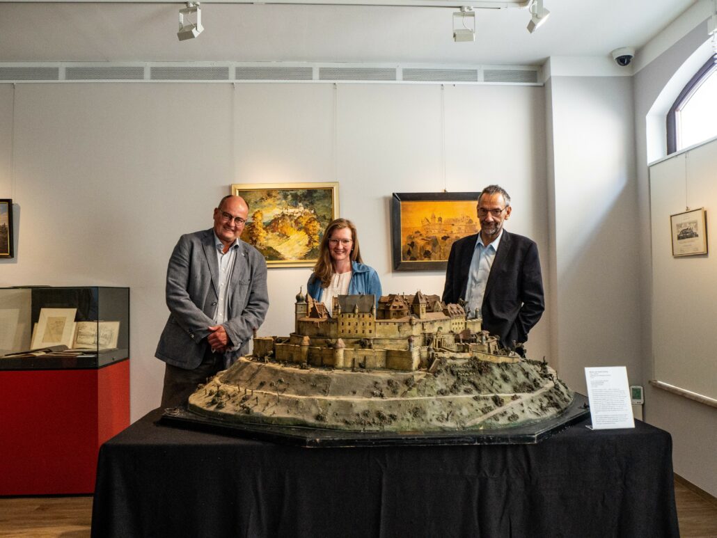 Im kleinen Rahmen eines Pressegesprächs eröffnete 3. Bürgermeister Thomas Nowak gestern die Ausstellung im Raum „Rückert 3“, die bis zum 03. Oktober 2021 zahlreiche Versionen des „Vesteblicks“ aus dem Bestand der Städtischen Sammlungen Coburg zeigt. Nebenbei können die Besucher*innen einige Coburger Künstler kennenlernen. Ein Handout zum Mitnehmen gibt einen Überblick zu Leben und Werk.